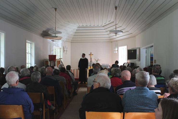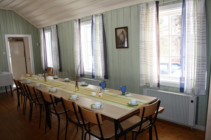 Annars använder man huvudkapellet till gudstjänsten och har då möjlighet att duka honnörsbord och långbord för upp till 50 personer i serveringsdelen.